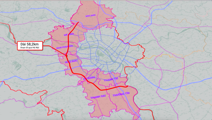 Vành đai 4 - vùng Thủ đô Hà Nội dài 112 km, đi qua Hà Nội, Hưng Yên và Bắc Ninh. Trong đó đoạn qua Hà Nội 58,2 km, đoạn qua Hưng Yên hơn 19 km, đoạn qua Bắc Ninh trên 25 km và tuyến nối dài 9,7 km. Dự án khởi động từ năm 2022, khởi công trong tháng 6 này, cơ bản hoàn thành năm 2026 và đưa vào khai thác từ năm 2027.