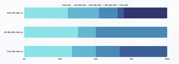 Tỷ trọng cắt giảm nhân sự theo quy mô doanh nghiệp môi giới bất động sản theo khảo sát của VARS.