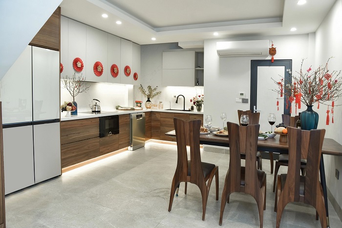 Căn hộ được thiết kế theo phong cách lịch lãm, đơn giản.