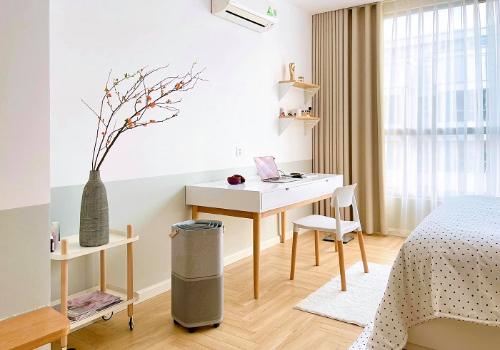 Bàn làm việc được đặt tại phòng ngủ với thiết kế vô cùng nhã nhặn.