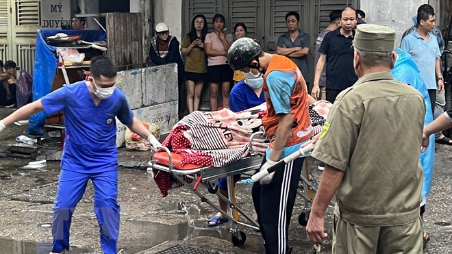 Lực lượng chức năng đưa các nạn nhân xấu số ra khỏi hiện trường. Ảnh: TTXVN