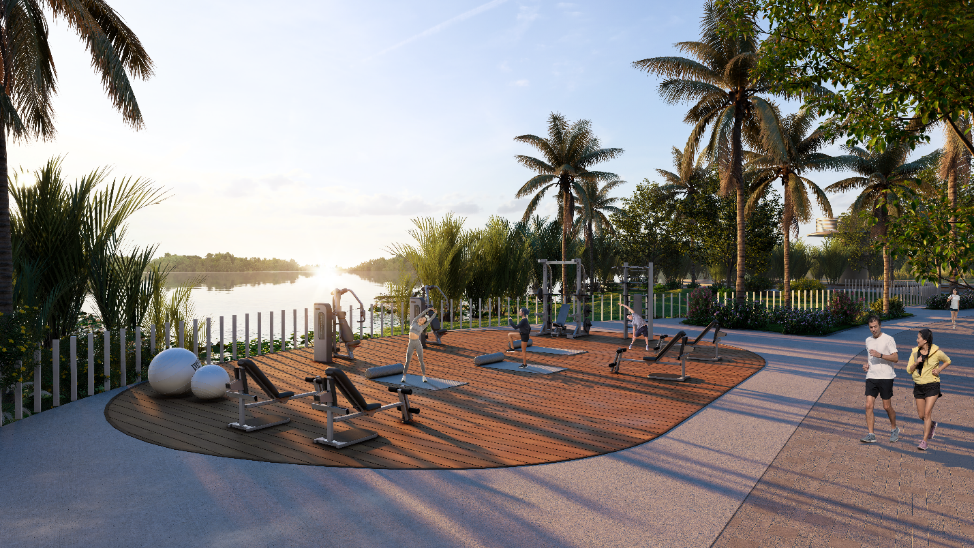 “Công viên Riverwalk với đường dạo thủy cực, vườn âm thanh, vườn thiền, yoga, vườn cát chánh niệm,… sẽ là nơi lý tưởng để cư dân thiền định, nâng cao sự tập trung để cảm nhận rõ sự kết nối với thiên nhiên. Rừng chạy ion âm, bếp rừng oganic, công viên ôm cây, vườn dược liệu tại khu công viên trung tâm sẽ là nơi để cư dân dưỡng trí, giúp tinh thần thư thái, tìm thấy sự cân bằng trong tâm hồn.