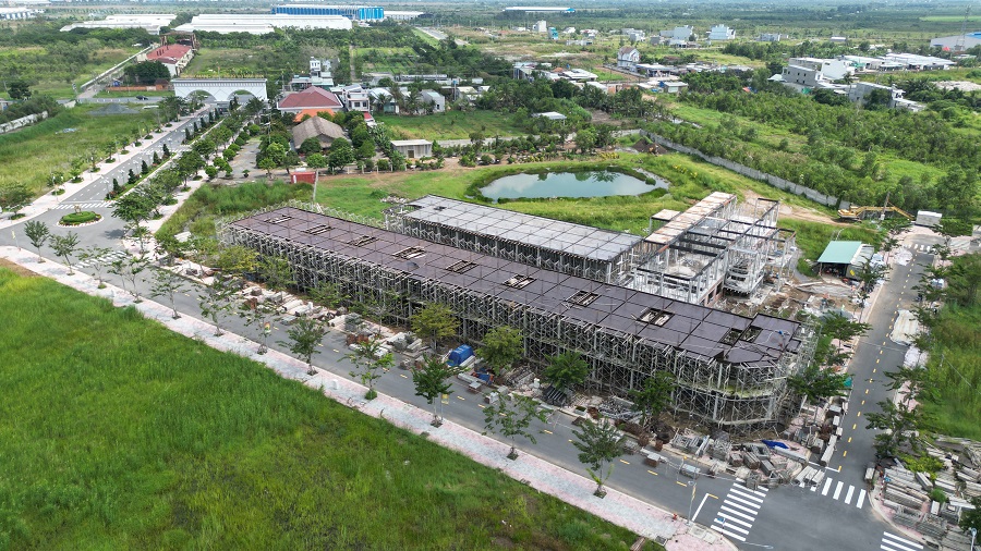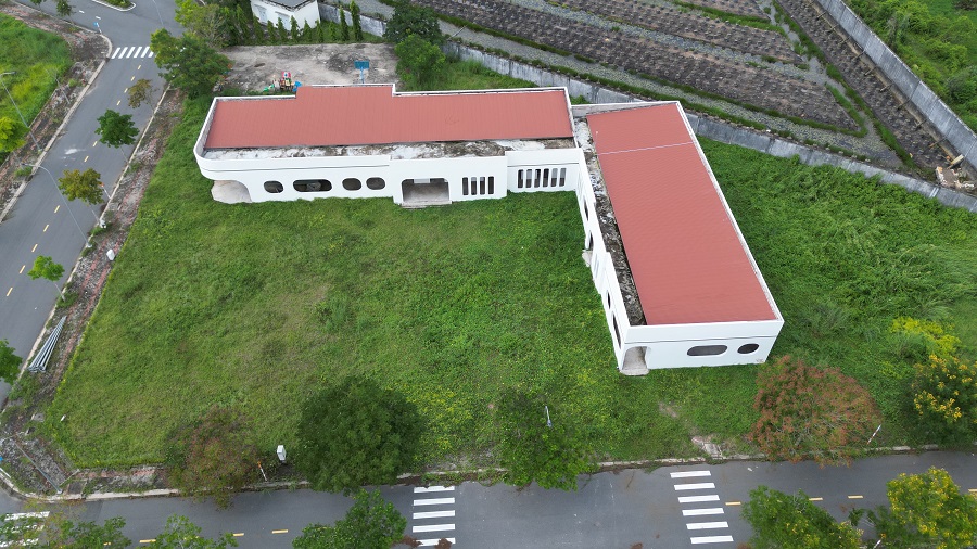 Một dãy nhà phố đang xây dựng dở dang và đang có dấu hiệu ngừng thi công. Mức giá bán của các nền đất tại dự án này đang giao động khoảng từ 16 – 17 triệu đồng/m2, shophouse giá khoảng 22 – 23 triệu/m2. Mặc dù vậy, hiện nay dự án chưa có cư dân nào về ở.