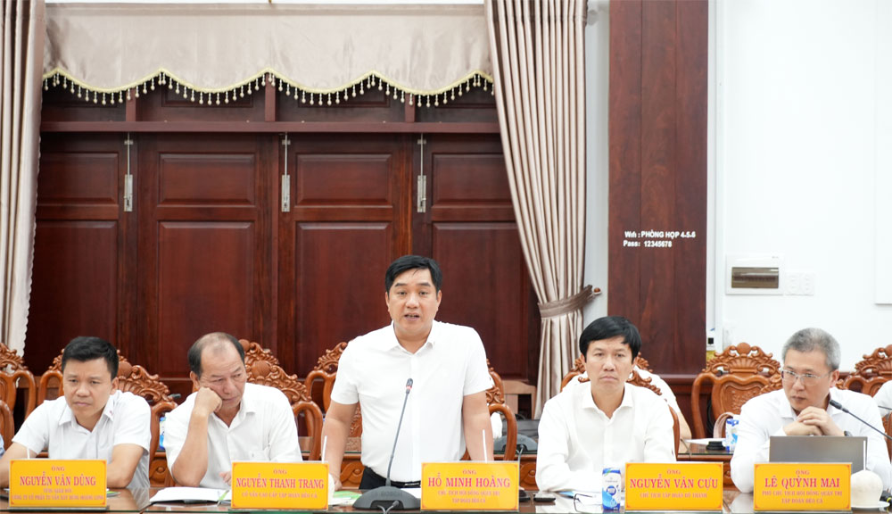 Chủ tịch Hội đồng quản trị Tập đoàn Đèo Cả Hồ Minh Hoàng trình bày các đề xuất. Ảnh: Cổng TTĐT Bến Tre