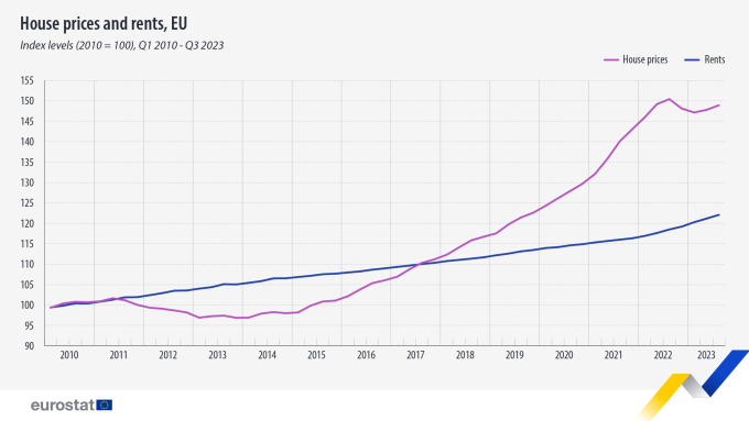 Đây là nhận định trong nghiên cứu mới đây của các chuyên gia tại tập đoàn tài chính ING Group trụ sở tại Amsterdam (Hà Lan). Chỉ số giá nhà của Cơ quan Thống kê châu Âu (Eurostat) cho biết giá mua lẫn thuê tại khu vực này tăng đều đặn trong hơn thập kỷ qua.