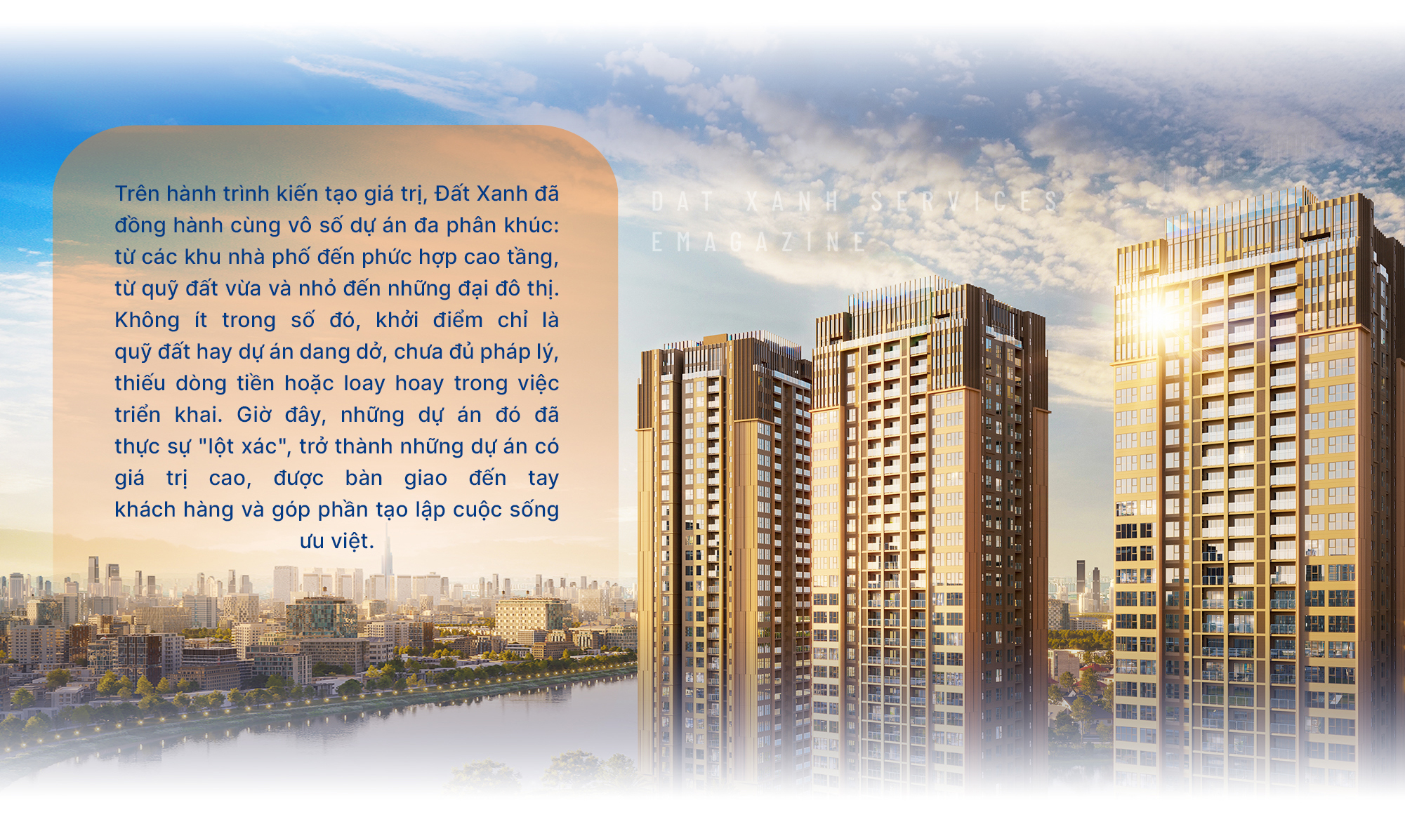 Với năng lực vượt trội cùng hệ sinh thái bất động sản khép kín, Dat Xanh Services đã giúp nhiều Chủ đầu tư, Chủ đất phát triển thành công hơn 100 dự án trên khắp Việt Nam, đồng thời phân phối thành công hơn 500 dự án đa phân khúc trên khắp cả nước. Thành tựu trên càng giúp Dat Xanh Services thấu hiểu sâu sắc thị trường, nhạy bén nắm bắt những thách thức của Chủ đầu tư, từ đó đưa ra những giải pháp chiến lược tối ưu, giúp tối đa hóa lợi ích và nâng tầm giá trị dự án.