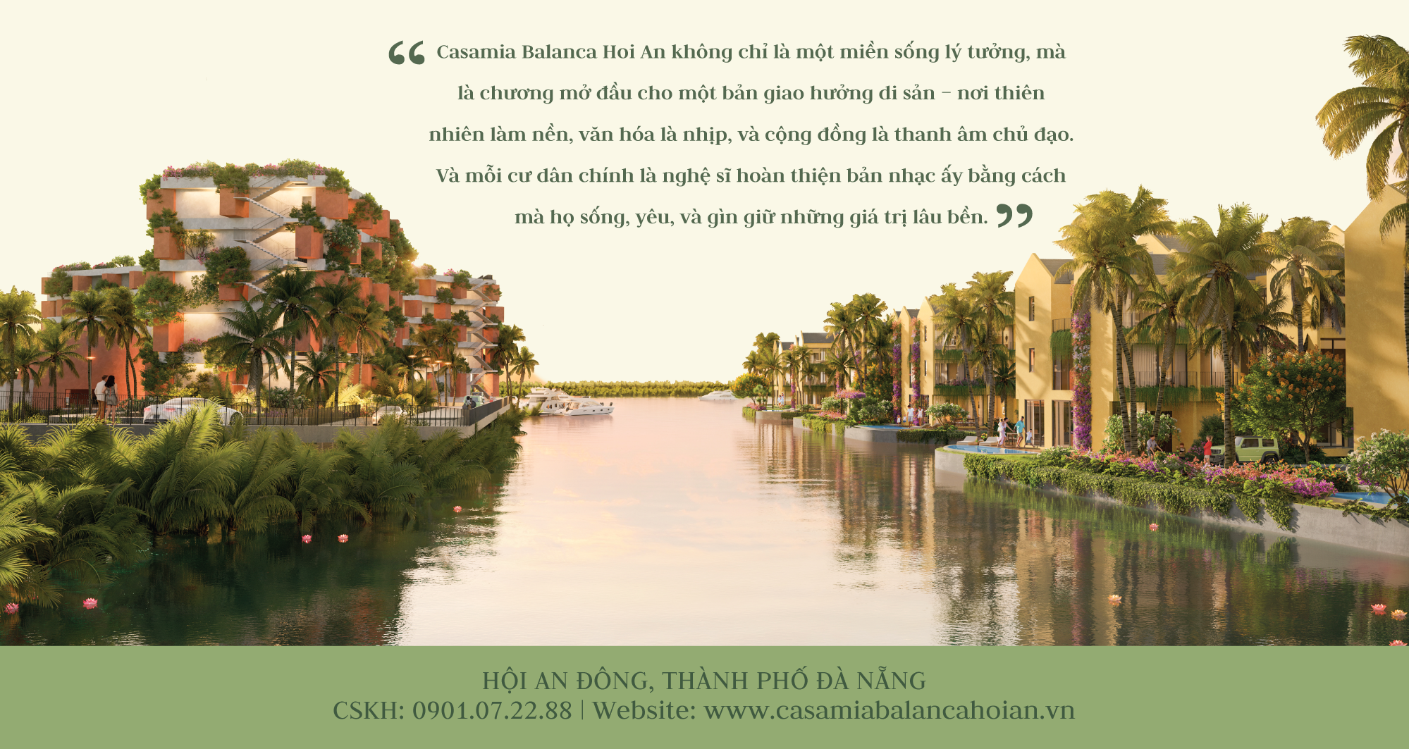 Vượt trên định nghĩa một khu đô thị sinh thái đơn thuần, Casamia Balanca Hoi An là tuyên ngôn sống mới: tiếp nối di sản không bằng sự mô phỏng, mà bằng chiều sâu thấu cảm và bản lĩnh sáng tạo.