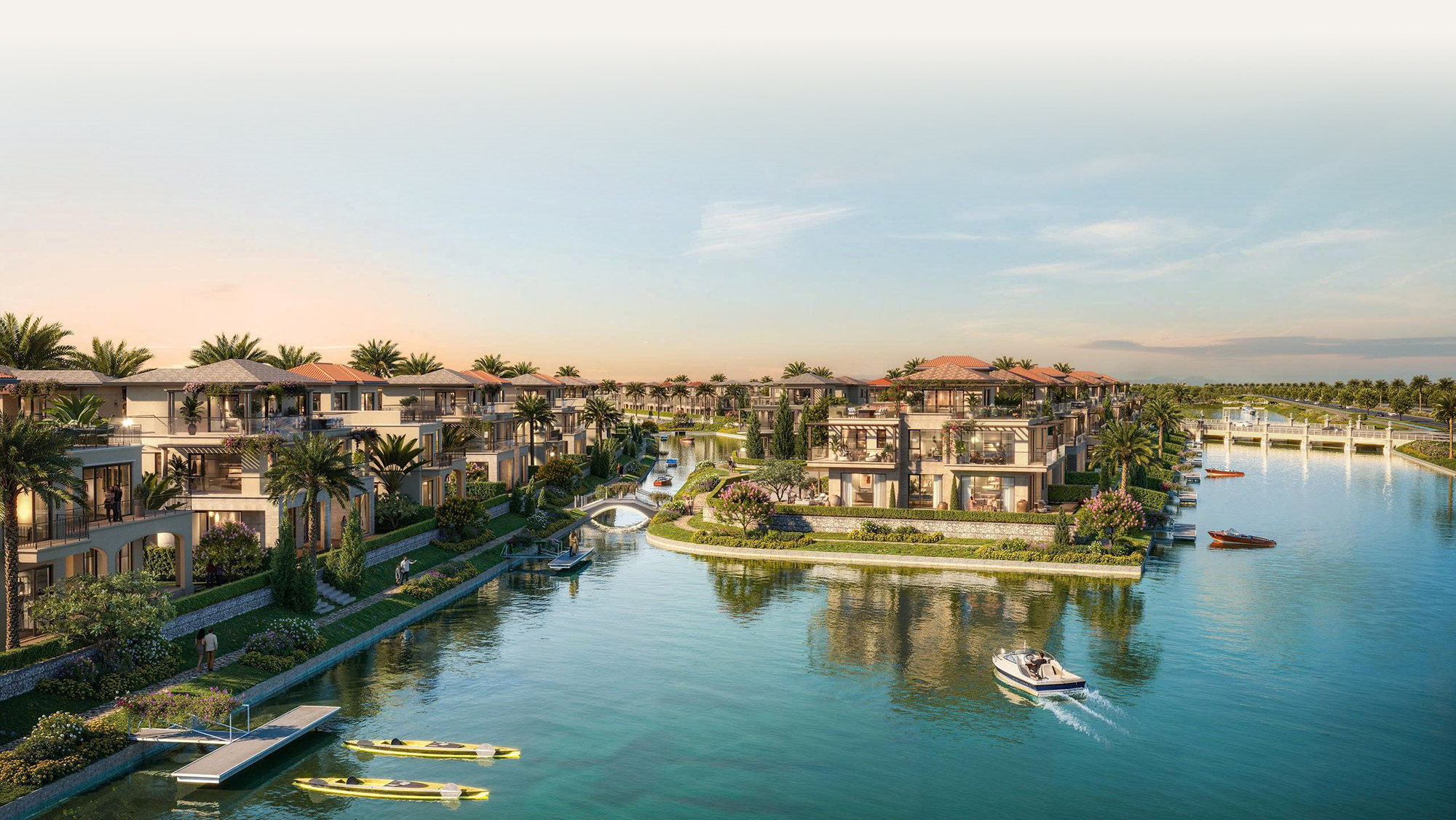 Từ điểm ngắm bình minh đẹp nhất The Pearl – Sunrise Canal Clubhouse, cư dân hòa cùng ánh ban mai ngày mới bằng những hoạt động đa dạng như dạo bên kênh đào, tập yoga và thiền định hay xuôi những mái chèo kayak nhịp nhàng. Nơi Sunset Clubhouse – hoàng hôn như "rót mật" xuống mặt nước êm ả, gia chủ có thể tận hưởng trọn vẹn khoảnh khắc cuối ngày từ hồ bơi vô cực, trên chiếc du thuyền lướt êm mặt nước hoặc tại khu lounge lãng mạn bên sông.
