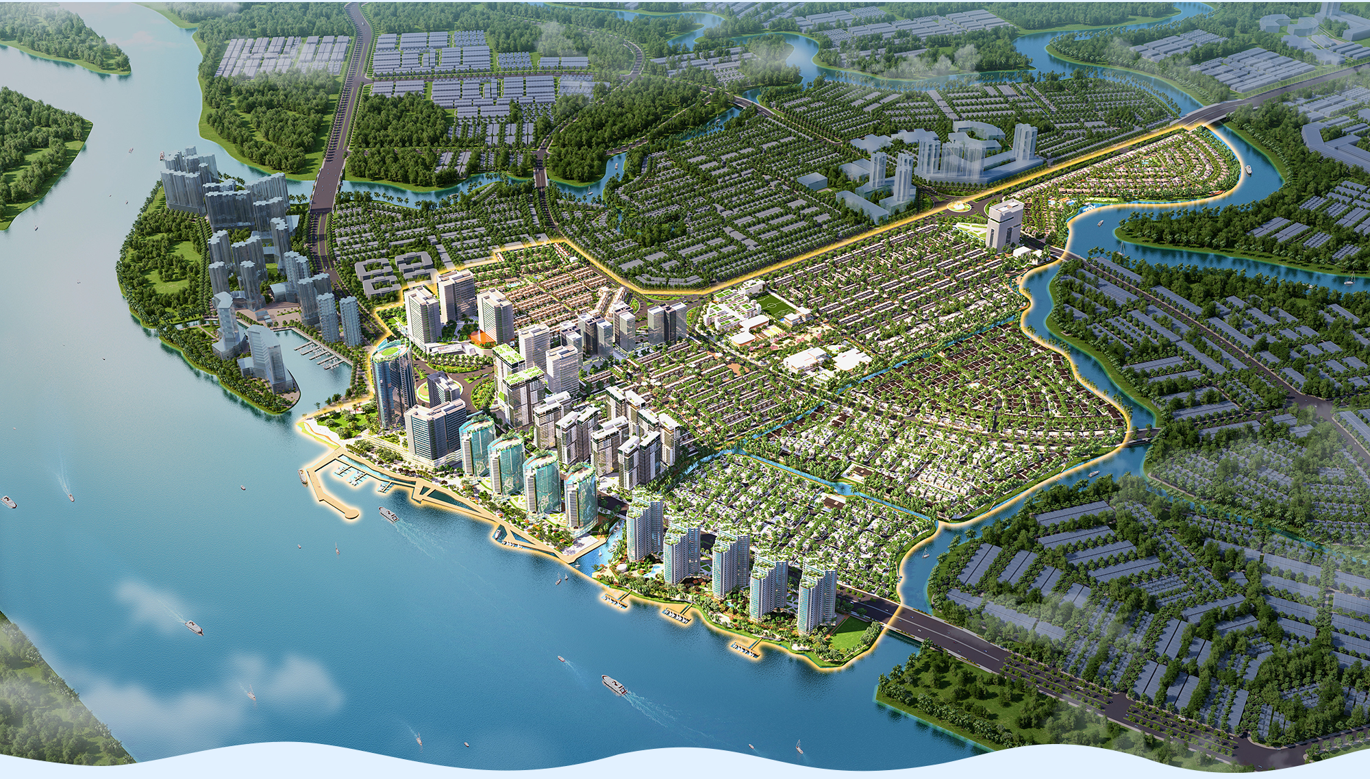 Nơi đây, cư dân còn tận hưởng một không gian sống xanh mát của compound ven sông – nơi mỗi ngày đều gắn liền với sự an nhiên và riêng tư. Đồng thời, vị trí trung tâm liên kết vùng còn mở ra cơ hội an cư lạc nghiệp, thu hút giới chuyên gia hàng không, kỹ sư và doanh nhân – cộng đồng cư dân sẽ góp phần kiến tạo giá trị bền vững cho khu đô thị trong tương lai.