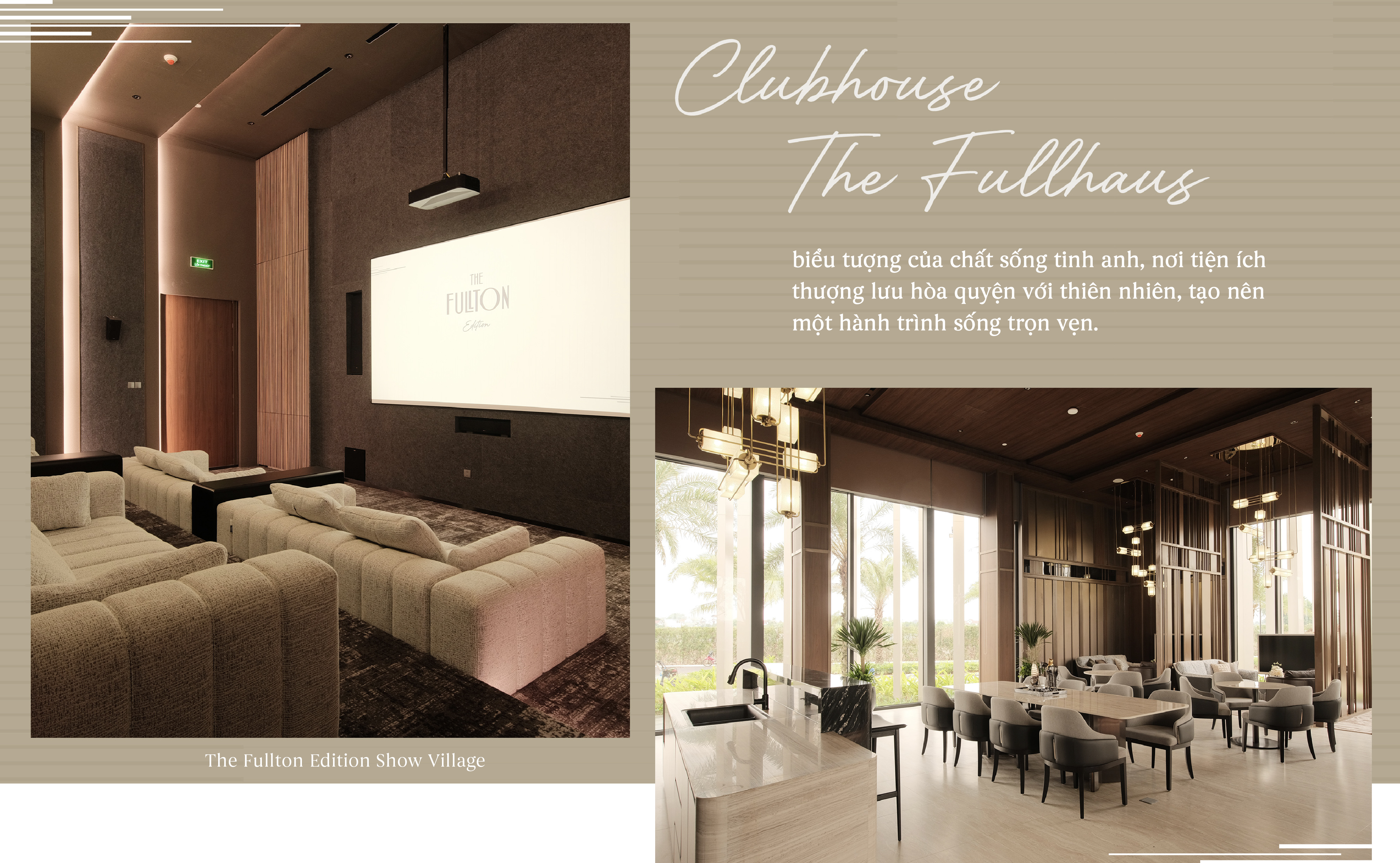 Nối liền với biệt thự mẫu, Clubhouse The Fullhaus, công trình biểu tượng của The Fullton Edition, cũng đã dần thành hình, ẩn mình giữa những tầng xanh. Khu vực sảnh đón khách, phòng chiếu phim đa năng và sảnh tiệc Verde trở thành điểm khám phá đầu tiên trong Clubhouse tại Show Village, đồng thời là mảnh ghép tiện ích không thể thiếu trên hành trình sống - nghỉ dưỡng. The Fullhaus không chỉ đơn thuần là không gian sinh hoạt cộng đồng, mà còn là nơi gói ghém tinh hoa độc bản, đo ni đóng giày cho giới thượng lưu.