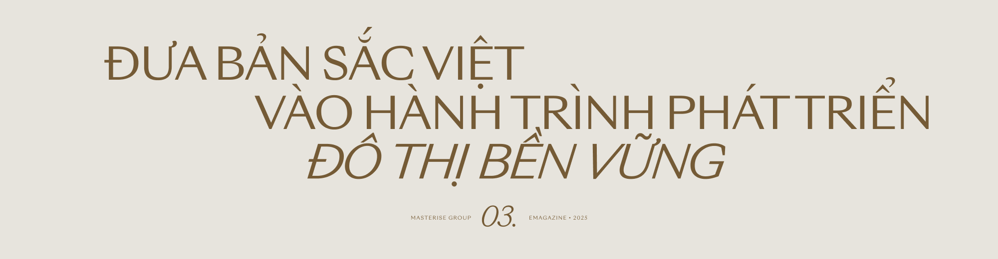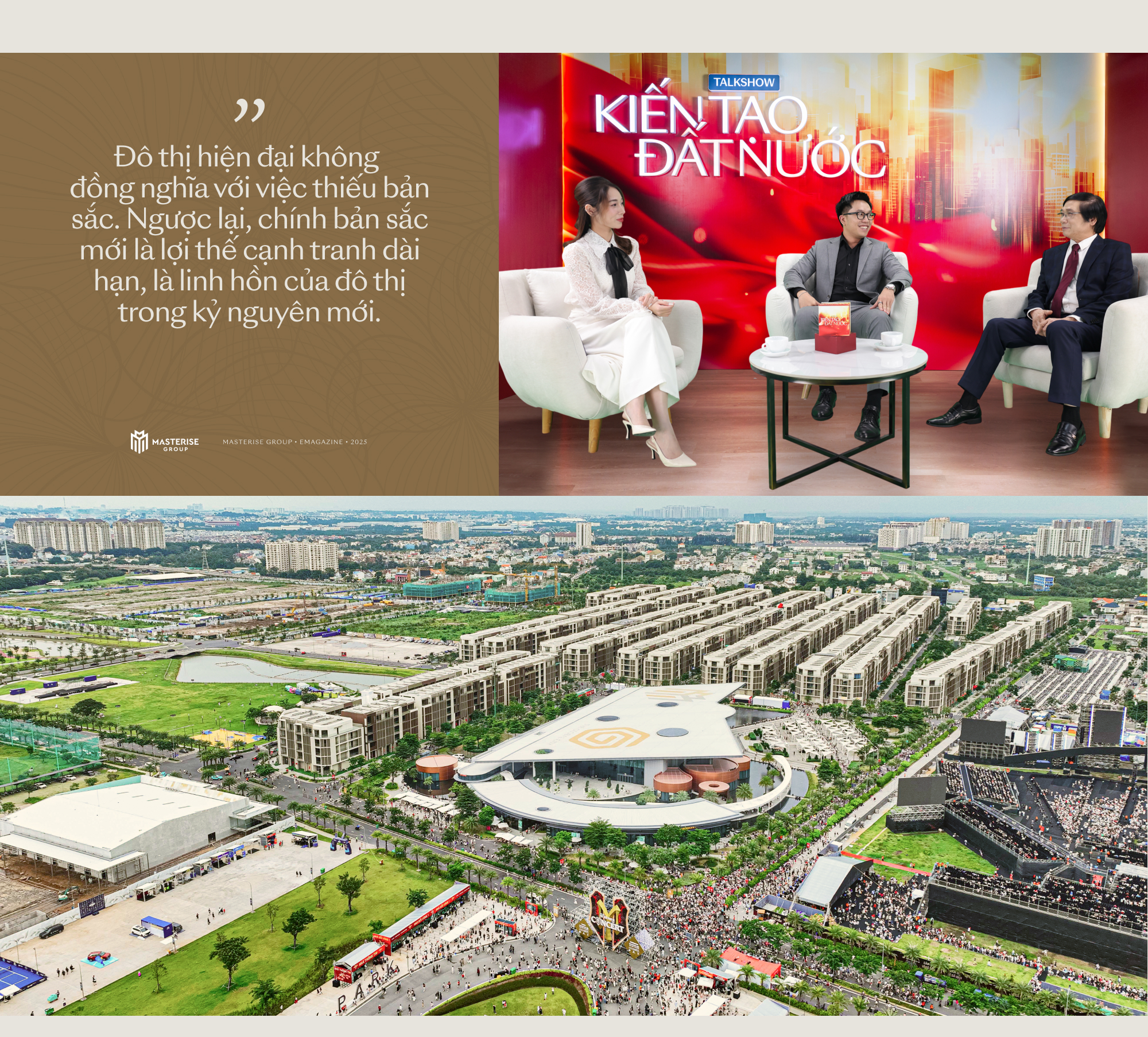 Triết lý này cũng cộng hưởng với tinh thần Nghị quyết 06: phát triển hệ thống đô thị bền vững đến năm 2045, vừa hiện đại, vừa gìn giữ bản sắc văn hóa. Đây không chỉ là trách nhiệm của giới kiến trúc sư hay doanh nghiệp, mà là nhiệm vụ quốc gia. Và trong hành trình ấy, Masterise Group chọn đóng vai trò tiên phong – kiến tạo những đô thị vừa hòa nhập chuẩn quốc tế, vừa khẳng định tinh thần Việt Nam. Chỉ khi gắn liền với bản sắc, đô thị Việt Nam mới trở thành thương hiệu quốc gia, tạo dấu ấn trên bản đồ đô thị thế giới.